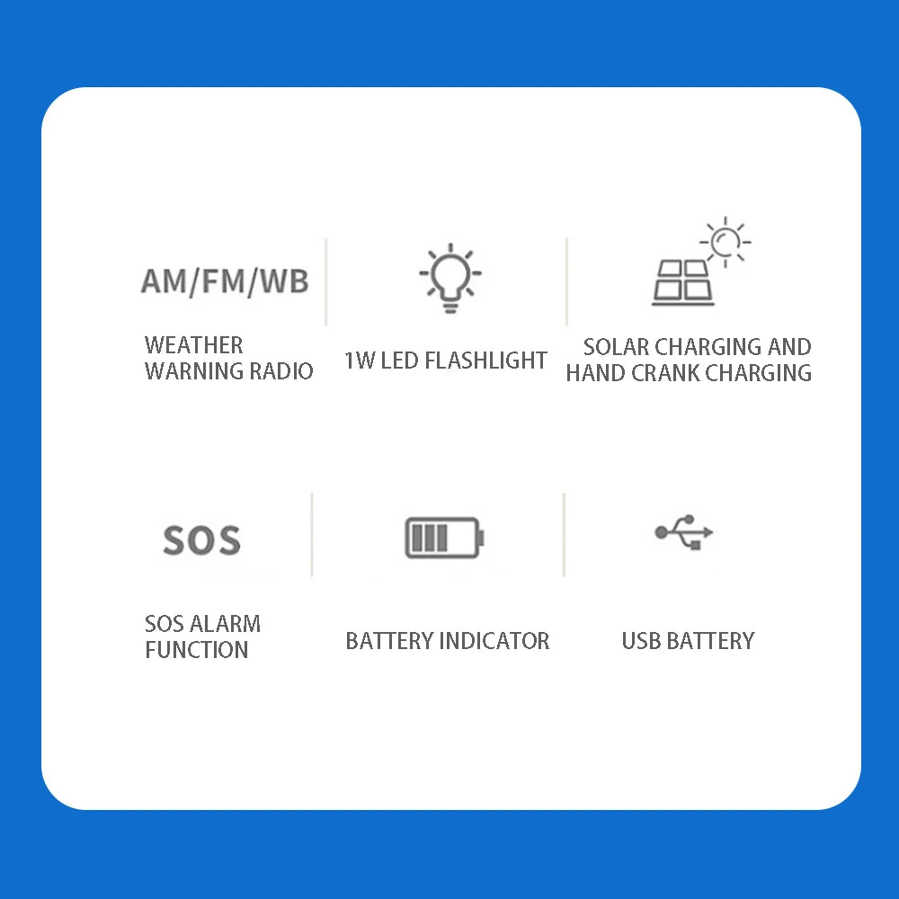 2000 mAh Emergency Radio with LED Lights Radio USB Solar Charging Light Outdoor Travel Portable Rechargeable FM/AM Radio
